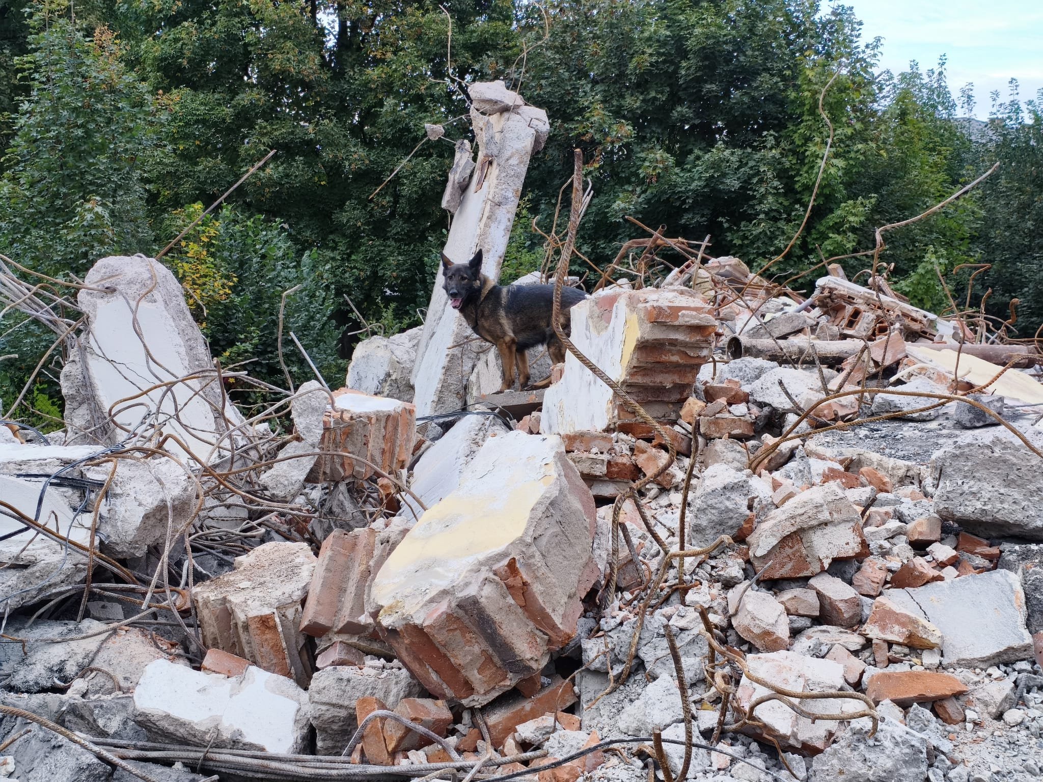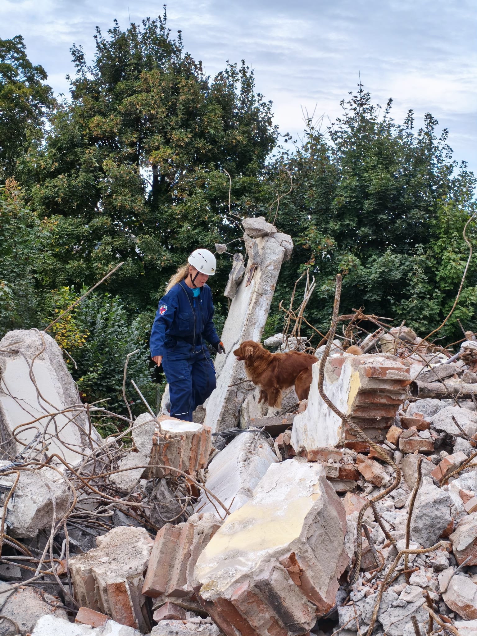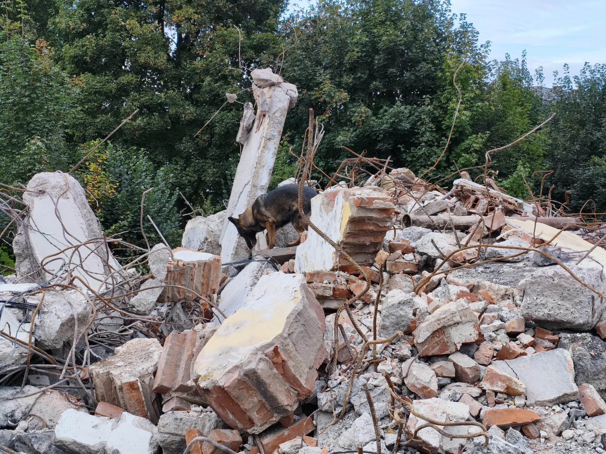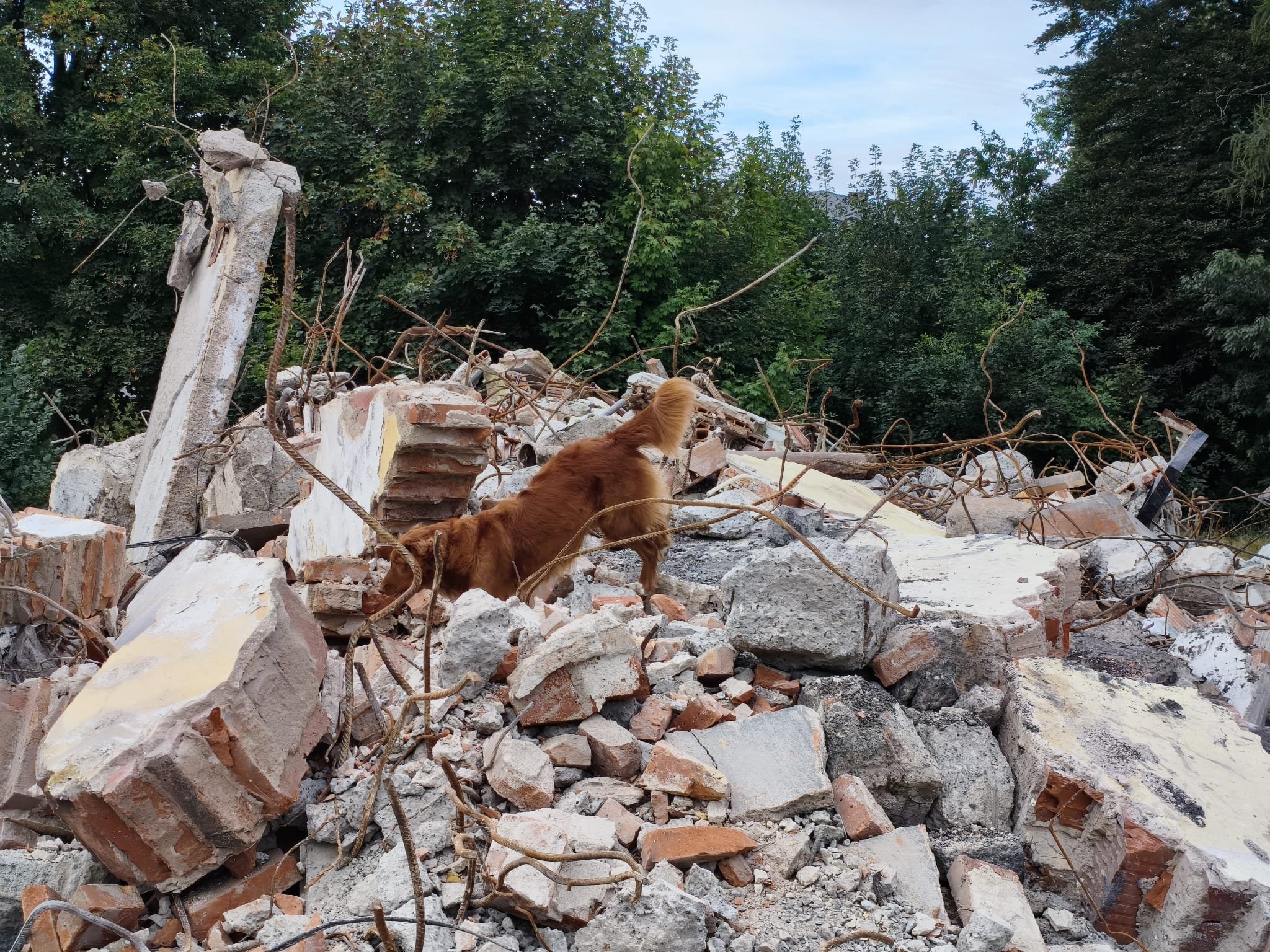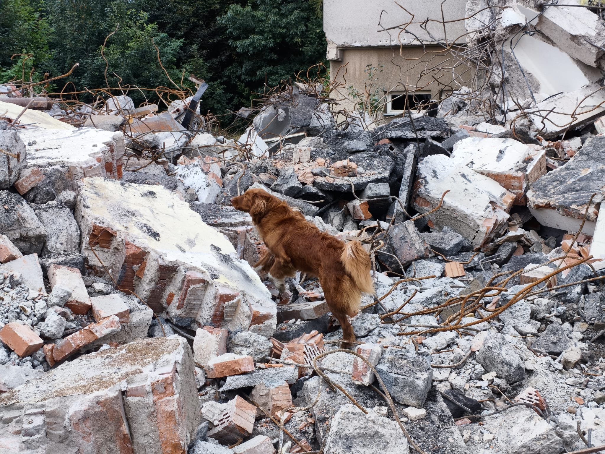 Na demolici objektu velké administrativní budovy jsme se sešli tentokrát díky vstřícnosti jejich majitelů. Hodně čerstvých pachů, stroje, prach, hodně skla, železobeton a pohyb na nestabilním členitém terénu není uplně takovou samozřejmostí pro netrénované psy a čím více zkušeností můžeme s našimi psy získat, tím lépe. Proto jsme za tyto momenty velmi vděčni.