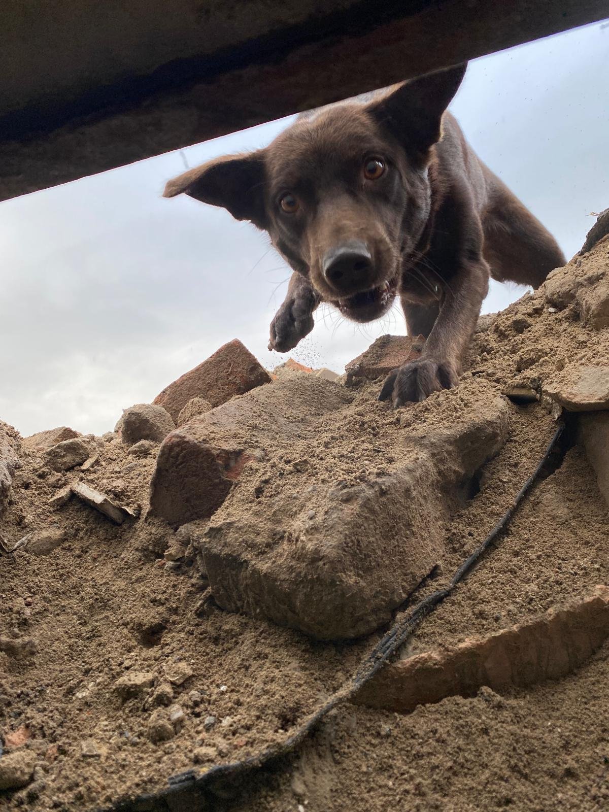 Na demolici objektu velké administrativní budovy jsme se sešli tentokrát díky vstřícnosti jejich majitelů. Hodně čerstvých pachů, stroje, prach, hodně skla, železobeton a pohyb na nestabilním členitém terénu není uplně takovou samozřejmostí pro netrénované psy a čím více zkušeností můžeme s našimi psy získat, tím lépe. Proto jsme za tyto momenty velmi vděčni.